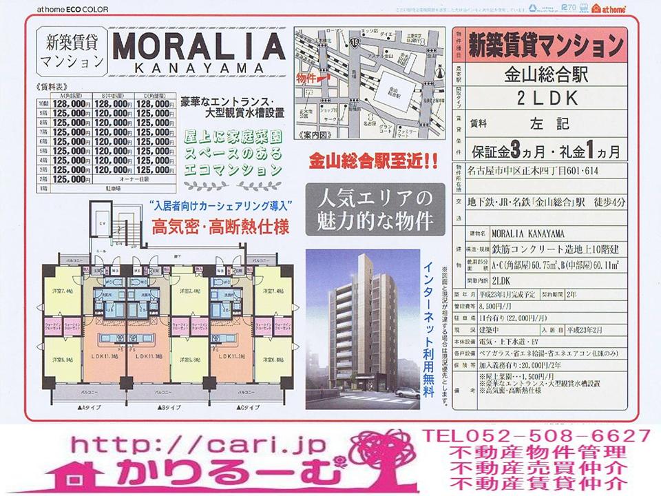 新築賃貸マンション 2LDK 名古屋市中区正木四丁目 地下鉄・JR・名鉄金山総合駅徒歩4分 鉄筋コンクリート造 賃料12万~12万8千円 管理費8,500円 保証金3ヵ月 礼金1ヵ月 インターネット利用無料 [74500688K]