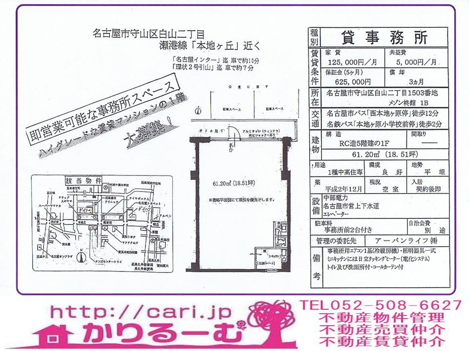 貸事務所 125,000円 名古屋市守山区白山二丁目 名古屋市バス「西本地ヶ原停」徒歩12分 [70610374]M