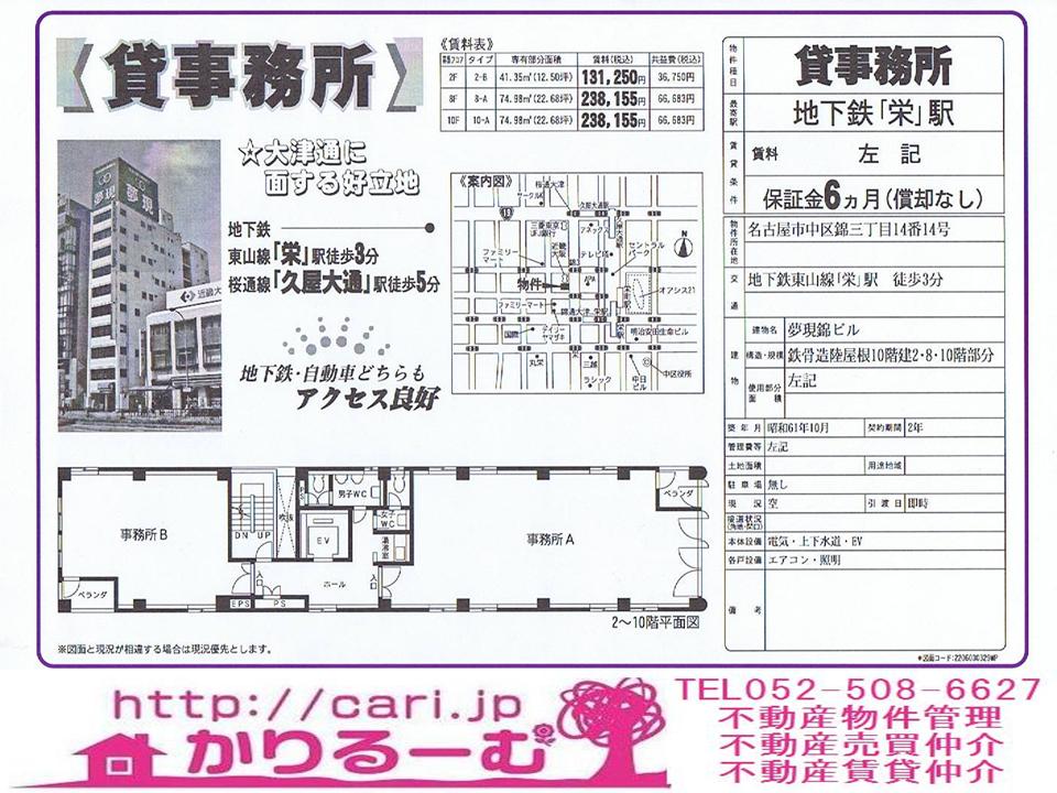 貸事務所 131,250‐238,155円 名古屋市中区錦3丁目 地下鉄東山線「栄」駅徒歩3分 [74620940]M