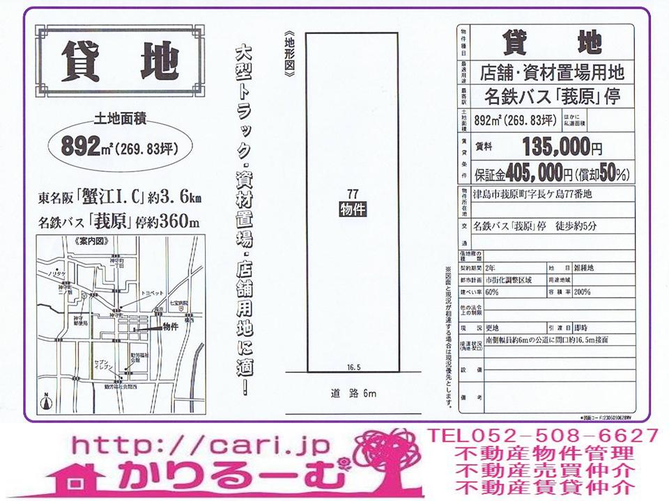«貸地 268,000円 津島市莪原町字長ヶ島 名鉄バス「莪原」停徒歩約4分 [74660627-1]M