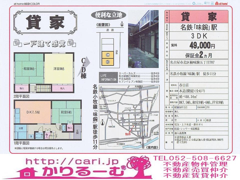 貸家 3DK 49,000円 名古屋市北区楠味鋺5丁目 名鉄小牧線「味鋺」駅徒歩11分 [74510440]M