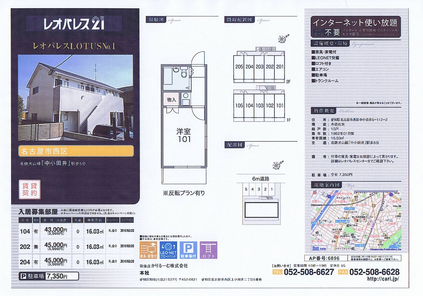 愛知県名古屋市西区上小田井二丁目6番地(名草線・江川線沿い) 免許証番号:愛知県知事(1)第21537号