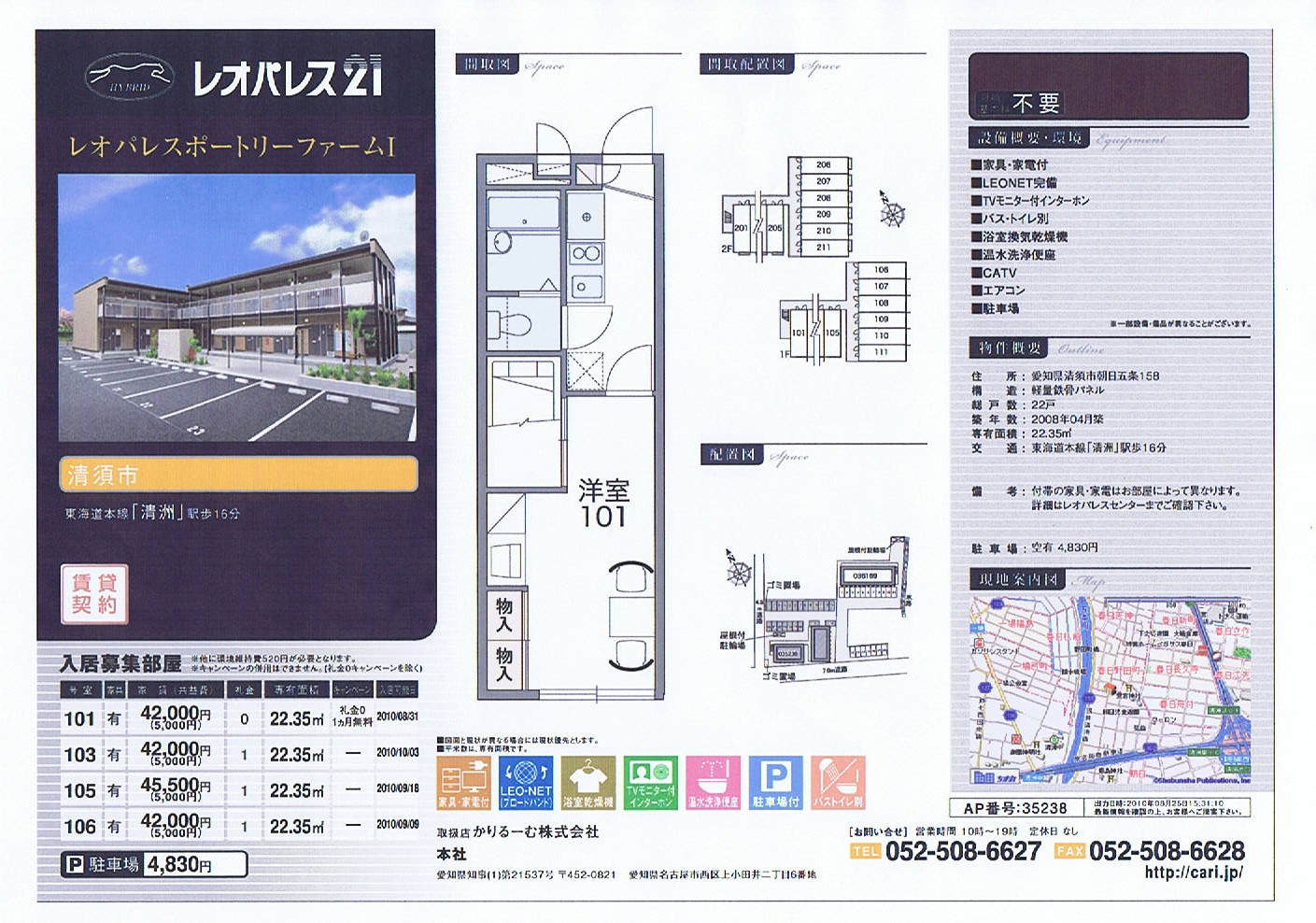 賃貸物件 1K 42000円~45500円 愛知県清須市朝日五条 清洲駅徒歩16分 35238