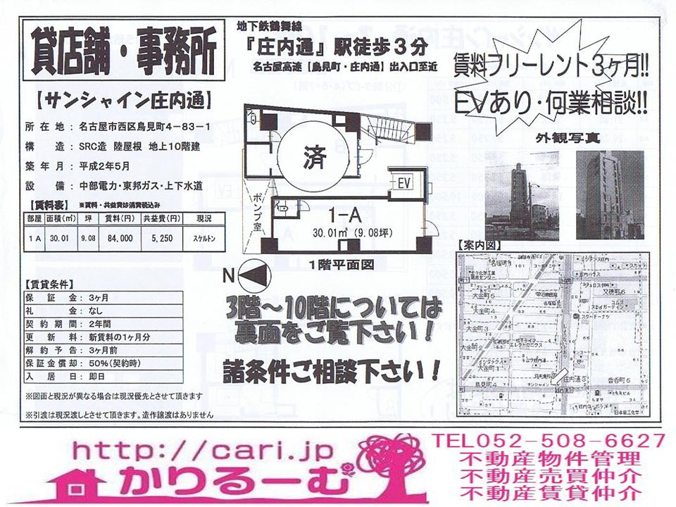 貸店舗・事務所 57,750-105,000円 名古屋市鳥見町 地下鉄鶴舞線「庄内通」駅徒歩3分[06611243-5]M