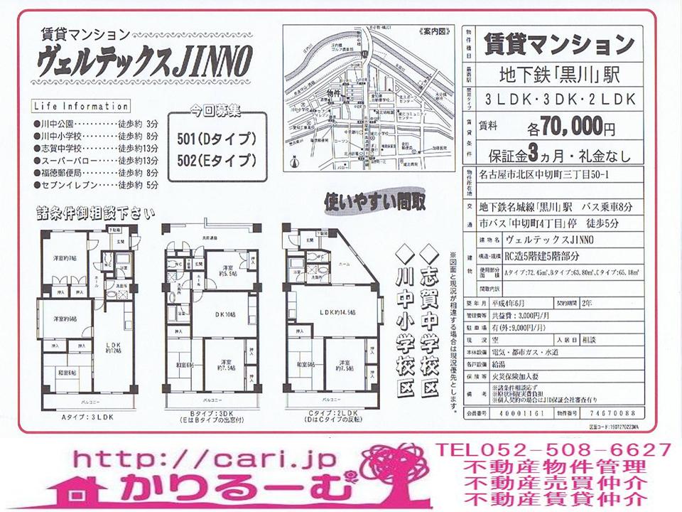 賃貸マンション 3LDK・3DK・2LDK 70,000円 名古屋市北区中切町三丁目 市バス「中切町4丁目」停 徒歩5分 [74670088]M