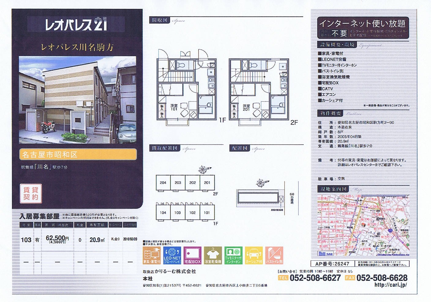 愛知県名古屋市西区上小田井二丁目6番地(名草線・江川線沿い) 免許証番号:愛知県知事(1)第21537号