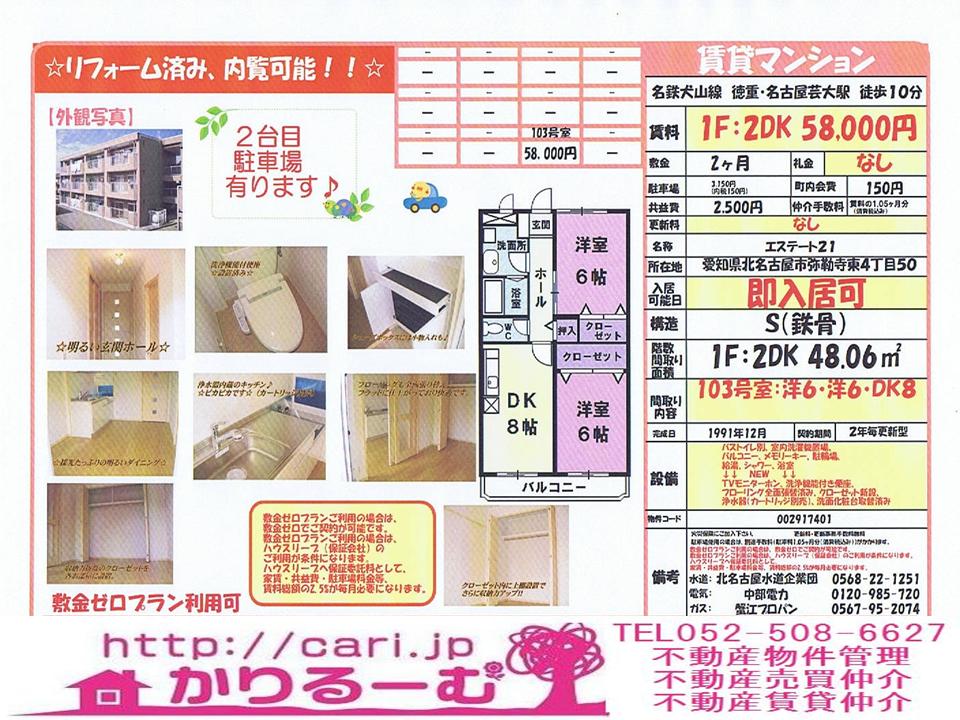 愛知県名古屋市西区上小田井二丁目6番地(名草線・江川線沿い) 免許証番号:愛知県知事(1)第21537号